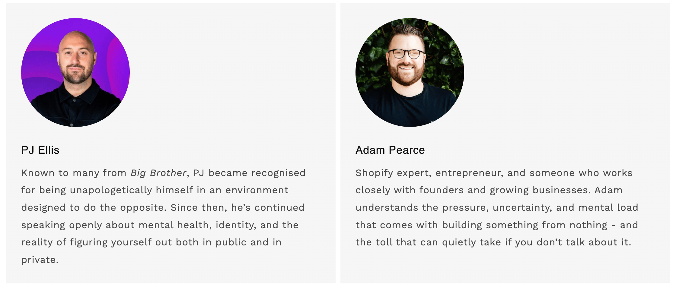Real people telling real stories and conversations most blokes usually avoid like leg day.