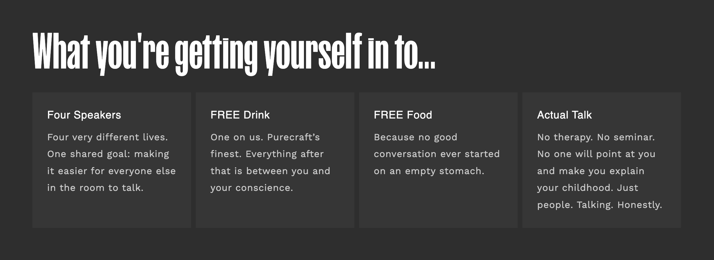 And someone goes: “Right then… who wants to talk about their mental health?”